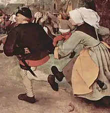 The Peasant Dance is an oil-on-panel by the Netherlandish Renaissance artist Pieter Bruegel the Elder, painted in circa 1567. It was looted by Napoleon Bonaparte and brought to Paris in 1808, being returned in 1815.[1] Today it is held by and exhibited at the Kunsthistorisches Museum in Vienna.