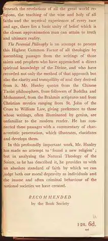 - 1 2 3 4 Huxley, Aldous (1946). The Perennial Philosophy (1st. ed.). London: Chatto and Windus. p. Dust Jacket.