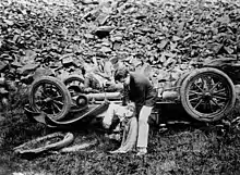 Pearl White performed most of her own stunts for the serial, but also was stunt doubled by a man. Filmed in the Adirondacks in New York, the stunt double rode a horse off a cliff into the lake below.[11] Considerable risk was involved. In one incident, a balloon carrying White escaped and carried her across the Hudson River into a storm, before landing miles away. In another incident her back was permanently injured in a fall.[3]