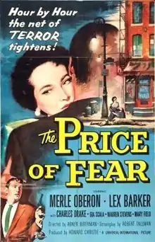 The Price of Fear is a 1956 American film noir crime film directed by Abner Biberman and starring Merle Oberon, Lex Barker, Charles Drake and Gia Scala. It was produced and distributed by Universal Pictures.[1]
