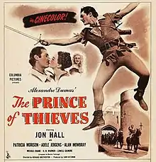 The Prince of Thieves is a 1948 American adventure film nominally inspired by Alexandre Dumas' 1872 novel Le Prince des voleurs. Produced by Sam Katzman for Columbia Pictures and starring Jon Hall as Robin Hood with stuntwork by Jock Mahoney, the film was shot in the Cinecolor process that features an inability to reproduce the colour green. Sequences were shot reusing several of the sets of Columbia's The Bandit of Sherwood Forest and at Corriganville.[2] Patricia Morison and Adele Jergens co-star.[3]