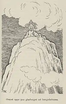 The princess sits atop the steep glass hill. Illustration from Barne-Eventyr (1915).