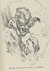 The gallant knight climbs up the Glass Mountain. Illustration for Barne-Eventyr (1915).