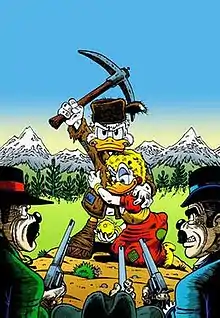 "The Prisoner of White Agony Creek" is a 2006 Scrooge McDuck comic by Don Rosa. The story takes place between "King of the Klondike" and "Hearts of the Yukon" in the series The Life and Times of Scrooge McDuck making it part 8B. The story shows how Goldie O'Gilt was taken to Scrooge's claim by the White Agony Creek. As Don Rosa announced his retirement in June 2008, this is his last story to date.