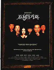 The Quiet Family (Korean: 조용한 가족; RR: Joyonghan Gajok) is a 1998 South Korean black comedy horror film directed by Kim Jee-woon. The story centers on a family who owns a hunting lodge in a remote area, whose customers always happen to end up dying. Among the film's main cast are pre-stardom Choi Min-sik and Song Kang-ho.