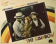 The Rainbow is a 1929 American synchronized sound pre-Code Western film directed by Reginald Barker and starring Dorothy Sebastian, Lawrence Gray and Sam Hardy.[1] While the film has no audible dialog, it was released with a synchronized musical score with sound effects using both the sound-on-disc and sound-on-film process. The soundtrack was recorded using the Tiffany-Tone process using RCA Photophone equipment.