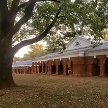 The Range is a community at University of Virginia for graduate students. The structure was designed by Thomas Jefferson as part of the original design. There are fifty-two rooms, which run parallel to the Lawn in rows. There are six "hotels" on the Range, three on each side. Originally used as dining facilities, the hotels today include a number of administrative office spaces as well as the Jefferson Literary and Debating Society. Previous Range residents who have become well-known include Edgar Allan Poe (13 W. Range) and Woodrow Wilson (31 W. Range). Pi Kappa Alpha maintains 47 W. Range, where it was founded on March 1, 1868.