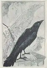 The Raven (in German: Der Rabe)[2] was a projected song for soprano and orchestra that occupied the Finnish composer Jean Sibelius from 9 November to mid-December 1910,[1] at which point he abandoned the project. The piece, a commission by the world-renowned, Finnish prima donna Aino Ackté as a novelty for her February 1911 tour through Imperial Germany, was to have set a German-language translation of Edgar Allan Poe's 1845 narrative poem The Raven. Sibelius had accepted reluctantly, as he had at the time been at work on—and struggling to meet an early-1911 deadline for—the Fourth Symphony (Op. 63). Juggling major projects proved too much for him to bear, and on 11 December he reneged on the agreement with Ackté, greatly upsetting their professional relationship. Three years later, however, Sibelius made amends by composing for Ackté Luonnotar (Op. 70), a virtuosic, Kalevala-themed tone poem for soprano and orchestra.