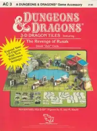 AC5 Dragon Tiles II: The Revenge of Rusak was designed by David "Zeb" Cook, with art by Dennis and Martha Kauth, and was published by TSR in 1985 as an 8-page pamphlet, two cardstock sheets, a cardstock counters sheet, and an outer folder.[1] It was originally misprinted with the designation AC3; AC5 stickers were then placed over the misprint.[1] Both were in error, as AC5 was the designation for the 1984 printing of the Player Character Record Sheets. Though the printing was never corrected, later publications gave it the designation of AC8.[2]