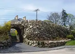 The Rockery was created in 1882 as a memorial for North Easton's citizens lost in the American Civil War, a public area, and a carriage promenade with views of North Easton. It consists of boulders heaped into a long, asymmetric mound across a rustic archway that echoes those of H. H. Richardson's nearby Oakes Ames Memorial Hall.