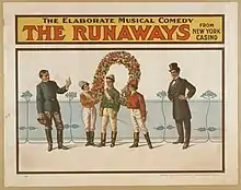 The Runaways (Broadway, 1903), originally Chow Chow (Chicago, 1902), was an American comedy musical with book and lyrics by Addison Burkhardt and music by Raymond Hubbell.[1][2] The show was joined by Fay Templeton when it came to Broadway.[3][4] The musical is set at a club and race track in Saratoga County, New York, and on the fictional Isle of Table d'Hote.