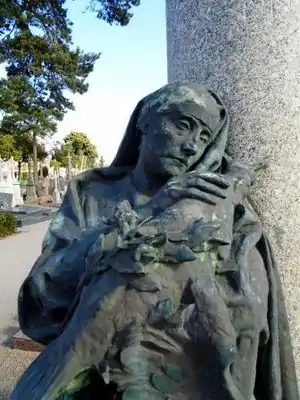 - The tomb of the aviator Edouard Le Mounier who was killed in action. A bust of Le Mounier stands on a marble column and against the column is the sculptor Jean Boucher's allegory which depicts a veiled and grieving woman representing France who clutches a wounded bird representing the aviator.