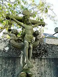 Another view of the "calvaire" type sculpture. Note the angel with chalice collecting blood from Jesus' feet