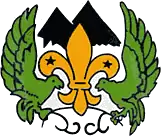 The membership badge of the Saint Lucia Scout Association incorporates elements of the coat of arms of Saint Lucia, and the top of the design is intended to evoke the Pitons, the island's two large peaks that rise from the ocean and are recognized symbols of the island.