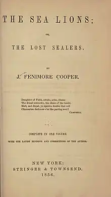 The Sea Lions; Or, The Lost Sealers is an 1849 sea novel by James Fenimore Cooper. The plot revolves around two sealers stranded in the Antarctic ice.[1] The novel was first published in two volumes, by Stringer & Townsend.[2] Critic W.B. Gates described the novel as taking inspiration from Charles Wilkes's Narrative of the United States Exploring Expedition of the Years 1838-1842.[3]