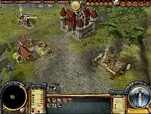 In the first five games, the primary goal on each map, broadly speaking, is to build a settlement with a functioning economy, producing sufficient military units so as to conquer rival territories.[20][21][22][23][24] To achieve this end, the player must, to one degree or another, engage in economic micromanagement, construct buildings, and generate resources.[24][25][26][27][28] In Rise of an Empire and Paths to a Kingdom, the importance of military conquest is scaled back, with many maps requiring players to accomplish certain predetermined tasks tied to the economic strength of their city.[29][30] Whilst the first four games feature broadly similar supply and demand-based gameplay, starting with Heritage of Kings, Blue Byte began to alter the game mechanics from title to title. So, with Heritage of Kings, there is little focus on micromanagement, daisy-chain economic processes, or construction, and more on technology trees, combat, taxation, and workers' motivation.[19] Rise of an Empire features a significantly simpler economic model than any previous title in the series, with the complexity of the various supply chains significantly streamlined.[31] Paths to a Kingdom features a more robust economy and focuses on micromanagement, daisy-chain economic processes, city organisation, upgrading buildings, technology trees, and trade requirements.[32] Additionally, for the first time in the series, the gameplay in Paths to a Kingdom is flexible enough to allow players to develop their settlement based upon one (or more) of three basic options - military, technology or trade.[30]