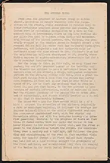 - ↑ H. P. Lovecraft, Selected Letters Vol. I, p. 357; quoted in David E. Schultz, "Lovecraft's New York Exile", Black Forbidden Things, Robert M. Price, ed., p. 53.