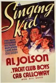 The Singing Kid is a 1936 American musical romance film directed by William Keighley and written by Warren Duff and Pat C. Flick. Starring Al Jolson, Sybil Jason, Beverly Roberts, Edward Everett Horton, Lyle Talbot and Allen Jenkins, it was released by Warner Bros. on April 11, 1936.[1][2]