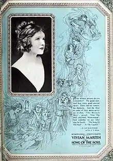 The Song of the Soul is a 1920 silent film drama directed by John W. Noble and starring Vivian Martin. It was produced by Messmore Kendall and Robert W. Chambers. Goldwyn Pictures distributed the film.[1]