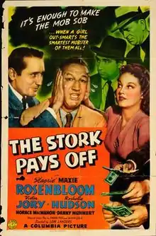 The Stork Pays Off is a 1941 American comedy film directed by Lew Landers and written by Fanya Foss and Aleen Leslie. The film stars Victor Jory, Rochelle Hudson, Maxie Rosenbloom, Horace McMahon, George McKay and Ralf Harolde. The film was released on October 6, 1941, by Columbia Pictures.[1][2][3]
