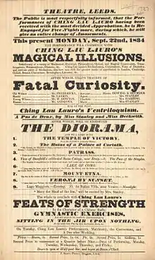 13. Playbill for Theatre, Leeds, Tuesday 23 September 1834. See File:Ching Lau Lauro 23 Sep 1834.jpg