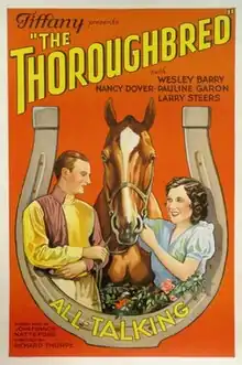 The Thoroughbred is a 1930 American sports drama film directed by Richard Thorpe and starring Wesley Barry, Judith Barrett and Pauline Garon.[1] It was produced and distributed by Tiffany Pictures.[2] It was released the same year in Britain by Gaumont British under the alternative title Riding to Win.