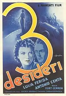 The Three Wishes (Italian: I tre desideri) is a 1937 Italian "white-telephones" romantic comedy film directed by Giorgio Ferroni and Kurt Gerron and starring Luisa Ferida, Antonio Centa and Leda Gloria.[1]