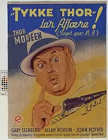 The Train Leaves at Nine (Swedish: Tåget går klockan 9) is a 1941 Swedish comedy film directed by Ivar Johansson and starring Thor Modéen, Torsten Winge and Allan Bohlin.[1] It was shot at the Råsunda Studios in Stockholm. The film's sets were designed by the art director Arne Åkermark.