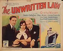 The Unwritten Law is a 1932 American pre-Code mystery film directed by Christy Cabanne and starring Greta Nissen, Richard "Skeets" Gallagher, and Mary Brian. It was released on November 15, 1932.