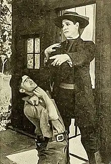 ![]() Film still of Pastor Royce (Romaine Fielding) overpowering villain Dick Flint (Robin Williamson) | |