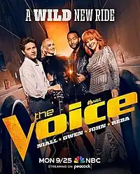 The twenty-fourth season of the American reality television series The Voice premiered on September 25, 2023, on NBC. The season is presented by Carson Daly, who returned for his twenty-fourth season as the host. This season's coaching panel consisted of Niall Horan, who returned for his second season; John Legend and Gwen Stefani, who both returned for their eighth and seventh seasons, respectively, after a one-season hiatus; and debuting coach Reba McEntire.
