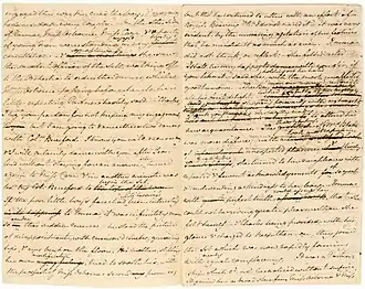 The original manuscript covered eighty pages, now divided between the Morgan Library & Museum, New York, and the Bodleian Library, Oxford. On Jane Austen's death the manuscript was inherited by her sister Cassandra, and then passed to other family relations until it was divided up in 1915. The smaller part was later acquired by the Morgan Library in 1925 and the remaining larger portion went through various hands until it was bought by the Bodleian in 2011. There are erasures and corrections to the manuscript and in three cases there were substantial revisions written on small pieces of paper and pinned in place over the cancelled portions.[1]
