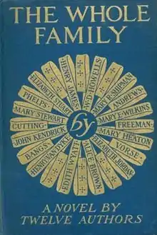 The Whole Family: a Novel by Twelve Authors (1908) is a collaborative novel told in twelve chapters, each by a different author. This unusual project was conceived by novelist William Dean Howells and carried out under the direction of Harper's Bazaar editor Elizabeth Jordan, who (like Howells) would write one of the chapters herself. Howells's idea for the novel was to show how an engagement or marriage would affect and be affected by an entire family. The project became somewhat curious for the way the authors' contentious interrelationships mirrored the sometimes dysfunctional family they described in their chapters. Howells had hoped Mark Twain would be one of the authors, but Twain did not participate. Other than Howells himself, Henry James was probably the best-known author to contribute. The novel was serialized in Harper's Bazaar in 1907–08 and published as a book by Harper's in late 1908.