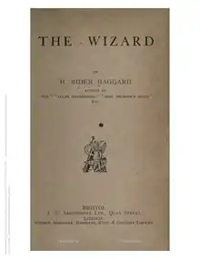 The Wizard is a novel by Henry Rider Haggard, first published by Longmans, Green, and Co., in 1896.[1] The Wizard is one of the many examples of imperialist literature. According to Rebecca Stott, author of the article “The Dark Continent: Africa as Female Body in Haggard’s Adventure Fiction,” Haggard's fiction is still popular today and attempts to expose a “cultural and historical definition of white masculinity at its most rugged and its most terrified.”[2]