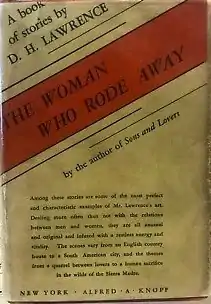 "The Woman who Rode Away" is a short story by D. H. Lawrence. It was written in New Mexico during the summer of 1924 and first published in The Dial in two installments in 1925. It later became the title story for a collection of Lawrence's shorter fictional works, The Woman who Rode Away and Other Stories, issued in 1928 by Martin Secker in the UK and Alfred A. Knopf in the US. The cave that features at the end of the story was inspired by a visit to a cave on Lucero Peak which overlooks the town of Arroyo Seco, New Mexico.