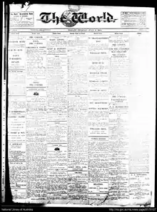 The World was a newspaper published in Hobart, Tasmania, Australia.[1] It was created by the amalgamation of Daily Post (Hobart) and The Clipper.