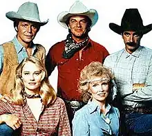 The series' theme song "The Yellow Rose" — set to the tune of the traditional "The Yellow Rose of Texas" but with new lyrics referencing the setting of the show — was recorded by country singers Johnny Lee and Lane Brody. The song became a No. 1 hit on the Billboard Hot Country Singles chart on April 21, 1984.[3]