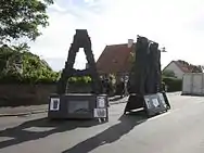 The Children of Abraham is an art project created by Danish artist Jens Galschiøt. The project started in 2003 and got boosted by the Danish Muhammed drawings. In 2009 the sculpture was proceeding. The artist argues that the project is a more balanced artistic expression to start a dialogue process between the three monotheistic religions.