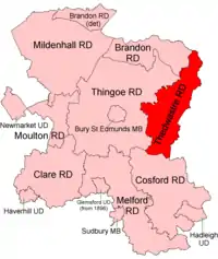 Thedwastre was a rural district in West Suffolk, England from 1894 to 1974. Thedwastre was formed under the Local Government Act 1894, from the part of the Stow Rural Sanitary District which was in West Suffolk (the rest forming East Stow Rural District in East Suffolk). It was named after the historic hundred of Thedwastre.