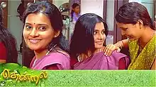 The show stars Shruthi Raj and Deepak Dinkar and revolves around a girl's struggle in a middle-class family, focusing on the importance of women's education. It was produced by Vikatan Televistas Pvt Ltd and directed by S. Kumaran.[1][2] The show replaced Kolangal which was also produced by Vikatan Televistas. Thendral was amongst the first Tamil Serials to go viral on the internet.[3] The Indian newspaper Business Standard describes it as the "first youthful prime time daily soap in Tamil".[4][5][6] Thendral has been highly acclaimed and has won many awards.[7][8][9] After a nine-year hiatus, the show returned from 10 December 2018 on Vikatan Prime Time YouTube channel every day. It was re-telecasting in Colors Tamil from 16 May 2022.[10]Now it is currently re-telecasting in Kalaignar TV from 4 September 2023.