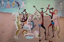 Haupt continued turning out paintings and executing art for public spaces including work for the Whitney Museum and a mural for the Central Park Zoo, which was destroyed in a restoration of the zoo. Along with many other artists during the depression, Haupt was active in the period's government sponsored WPA Art Programs, an experience that encouraged an open-minded and experimental attitude in his art practice for the remainder of his life. Haupt recalled the sculptor Louise Nevelson's lively “rent parties” which he attended with other WPA artists including Ivan Albright and Moses Soyer.[6]
