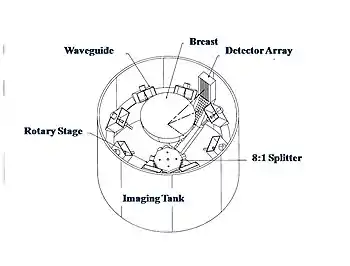 Fig. 10: Schematic drawing of world's first 3D thermoaocustic breast scanner