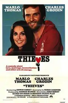 Thieves is a 1977 American comedy film directed by John Berry, written by Herb Gardner, and starring Marlo Thomas, Charles Grodin and Irwin Corey.[1][2] It was released on February 11, 1977, by Paramount Pictures. The film was based on Gardner's Broadway play, and has almost the same cast, with the main exception being that Charles Grodin is playing Martin rather than Richard Mulligan, though Grodin directed and produced the play.