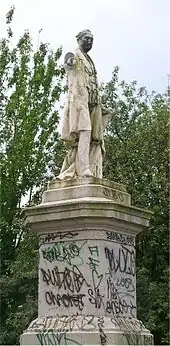 A grade II listed statue of Thomas Attwood by local sculptor Peter Hollins stood in Calthorpe Park from 1859 to 1974[4] then moved to Larches Green, Sparkbrook, Birmingham between 1974 and 2008, but is now in store. A 1993 bronze statue sat, having left his plinth, and scattered his bronze pages, on the steps of Chamberlain Square in Birmingham until 2016 when works to demolish the Central Library and rebuild Chamberlain Square began. The statue was reinstalled in 2020 once the works were completed.