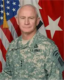 Lieutenant General Thomas G. Miller is a retired senior officer of the United States Army and a former commander of the First United States Army.[1] As head of the First Army, Miller was responsible for the training, readiness and mobilization of National Guard and Army Reserve units in all states and territories as they prepare for deployment as needed by United States combat commanders globally.[2][3] He is the son of the late Colonel William H. Miller, who served in World War II, Korea, and Vietnam.[1]