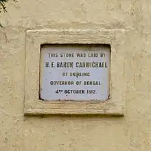 He was appointed a Knight Commander of the Order of St Michael and St George in 1908, a Knight Grand Commander of the Order of the Indian Empire in 1911 and a Knight Grand Commander of the Order of the Star of India in 1917.[1] In 1912 he was raised to the peerage as Baron Carmichael, of Skirling in the County of Peebles.[10] Sir Ashutosh Mukherjee created a post Carmichael Professor of Ancient Indian History and Culture, after his name. Carmichael College in Rangpur, Bangladesh is named after and was inaugurated by him in 1916.[11]