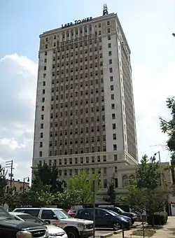 The Thomas Jefferson Hotel was planned and developed by the Union Realty Company, headed by Henry Cobb. The company was organized in November 1925 in the office of architect David O. Whilldin, who prepared the design for the $1.5 million project. The Foster-Creighton Company of Nashville, Tennessee was selected as contractor and work began on the site in May 1926. Progress was halted in April 1927 when one of the projects financiers, the Adair Realty and Trust Company of Atlanta, Georgia failed. A new holding company was formed and work resumed in July 1928. Costs reached $2.5 million before it opened on September 7, 1929. The hotel's opening week featured nightly banquets and dances featuring an orchestra from New York. It was originally called The Thomas Jefferson Hotel, then the Cabana Hotel, the Leer Tower, and finally the Thomas Jefferson Tower.[2]