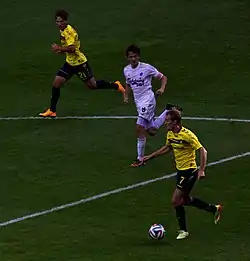 Immediately after joining the club, Kahlenberg suffered a hip injury which kept him out until October 2009.[92] While on the sidelines, he was dropped from Wolfsburg's 25-man squad for the UEFA Champions League.[93] Kahlenberg made his Bundesliga debut for Wolfsburg in the 3–3 draw with Mainz on 31 October 2009.[94][95] However, since returning from injury, Kahlenberg struggled to make his progress into the first team at Wolfsburg, having failed to make an impact and found his playing time from the substitute bench.[96] This led to him contemplated his future at the club, as it could affect his chances of being chosen in the FIFA World Cup.[97] Despite this, he went on to make twelve appearances in all competitions. Following this, Kahlenberg, along with Karim Ziani, was informed by the club that they are no longer needed.[98]