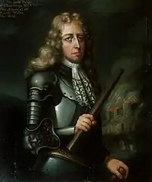 In the summer of 1659, Myddelton joined an attempt by a group of conspirators, led by John Mordaunt, to instigate a Royalist rising across several regions of the country. Only the Cheshire insurgency, led by George Booth, had initial success; Myddelton nevertheless joined the rebels, who included previous opponents such as Sir John Owen and Edward Broughton, with an enthusiasm he had failed to show during previous conspiracies in 1651 and 1655.[8] Welcoming a detachment of rebel cavalry to Chirk, he sent a trumpeter to invite the Oswestry militia to join them: they refused, but Myddelton instead led a group to Wrexham where on 7 August he drew his sword in the marketplace and declared Charles II as king.[9] [8] The gesture was not appreciated by Booth, who had been hoping to attract political moderates by avoiding mention of Charles entirely in his proclamations.[10]