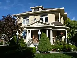 "Built in 1904, the Thomas N. Taylor house exemplifies the "dream home" of many in Utah's second generation. This house is significant as the most outstanding and well-preserved example of the Classical Box style in Provo. The box style was used extensively in Salt Lake City but was not common in Provo. Its classical detailing, irregular massing and unaltered condition make it particularly distinctive among the limited number of Provo examples of this type. Thomas N. Taylor was a popular man in the area. He served as manager of the Taylor Brothers Store, Provo mayor, and President of the Utah Stake of the LDS Church (Historic Provo p. 9)." The Thomas Taylor House was designated to the Provo City Landmarks register as of July 28, 1995.